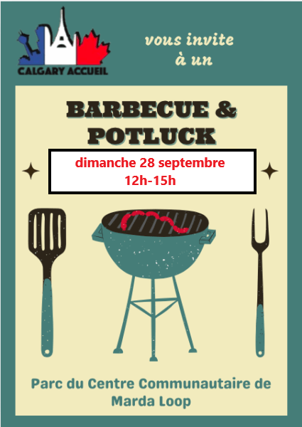 Parc du Centre Communautaire de Marda Loop 3130 16 St SW, CalgaryQue diriez-vous de se retrouver entre francophones et francophiles, et de prolonger l’été autour d’un barbecue/potluck ? Venez partager saucisses et hamburgers avec nous le Dimanche 28 septembre 2025. • Hamburgers, saucisses et boissons chaudes sont offerts. • Apportez salade, boissons, fromage ou dessert à partager. Vous pouvez également nous faire découvrir votre spécialité! • …